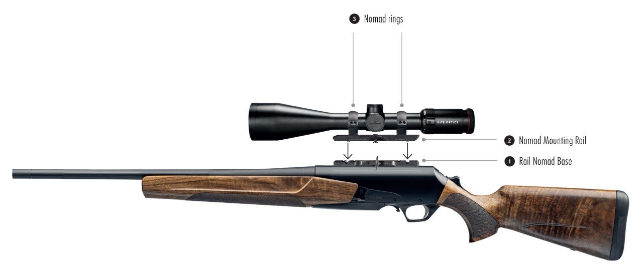 Montážní systém Browning Nomad umožňuje použití jedné optiky na různých puškách bez nutnosti opětovného nastřelení.