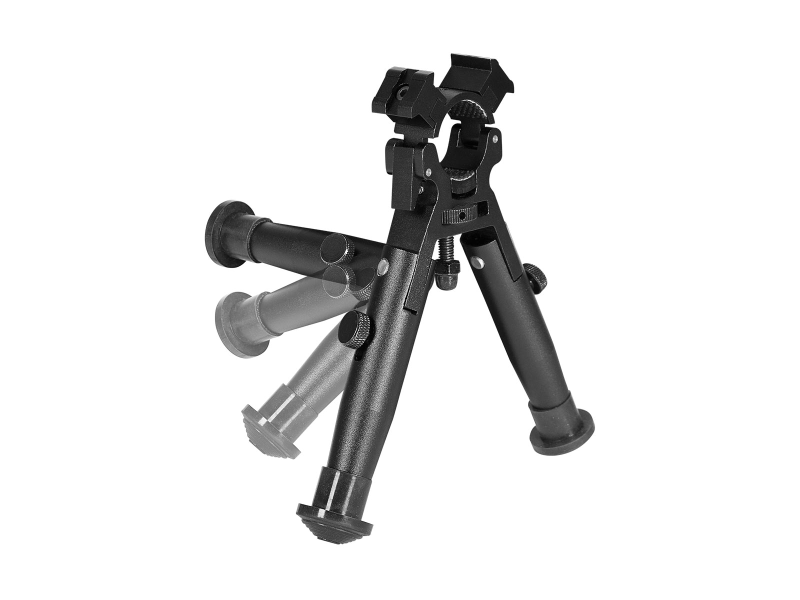 Univerzální střelecká dvojnožka Gamo s rychloupínacím uchycením přímo na hlaveň. Rozsah upnutí Ø 15–29 mm pokryje většinu vzduchovek včetně „bull barrel“ provedení. Sklopné nožky se jedním pohybem vyklopí do pracovní polohy a po střelbě se složí pod hlaveň. Na horní části objímky je lišta Picatinny pro připevnění svítilny či dalšího příslušenství. Praktické řešení, které zvedne osu hlavně cca o 15 cm a zvýší stabilitu při mířené střelbě bez potřeby montážní lišty na pažbě.