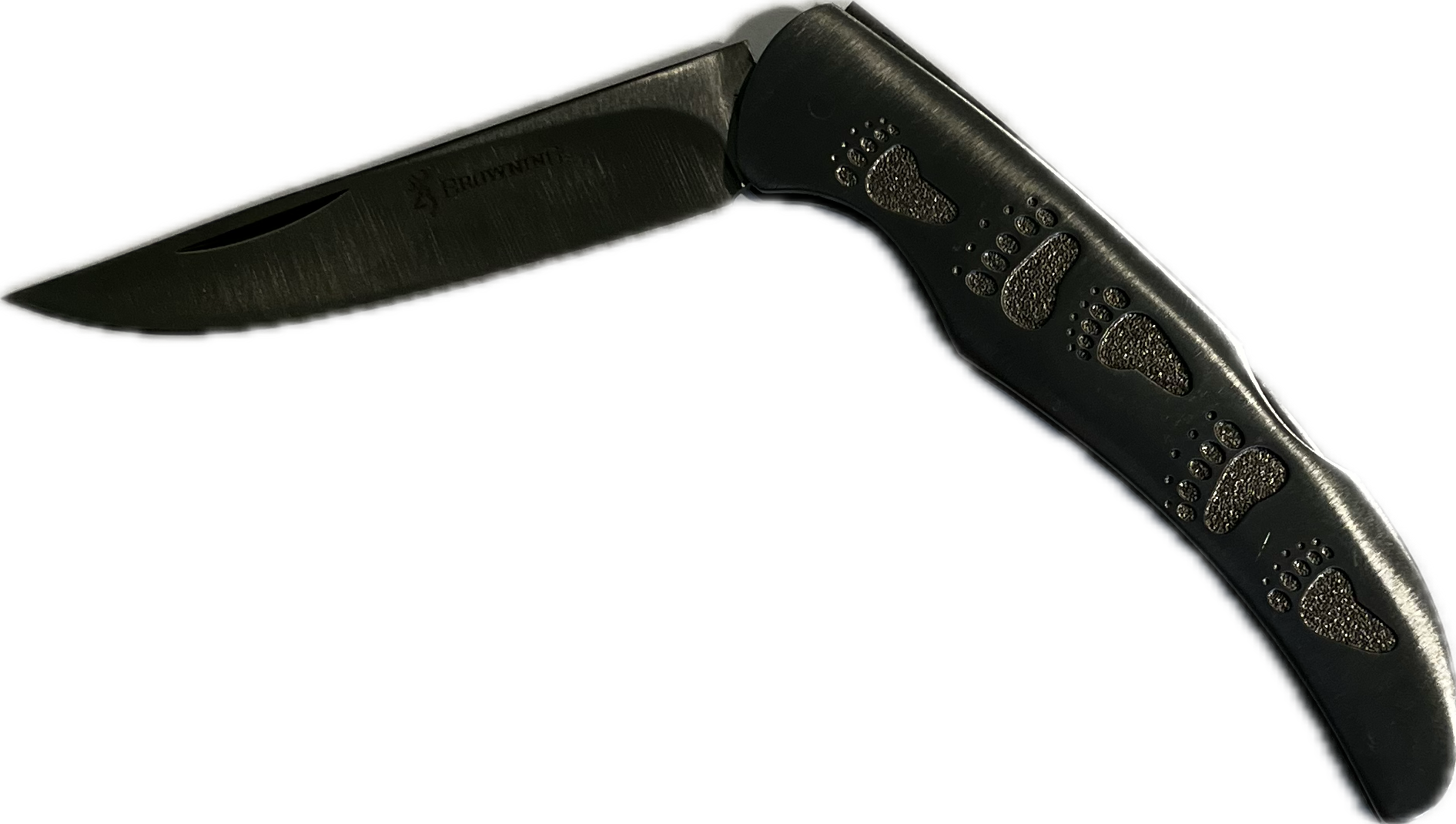 Browning Backtrack bear je skládací nůž s pojistkou, ideální pro každodenní úkoly. Tento nůž má rukojeť z nerezové oceli s rytinou ve stylu stop zvěře. Díky kompaktnímu designu se snadno zasune do kapsy a je tak skvělou volbou pro každodenní nošení.